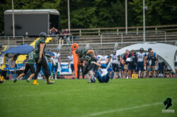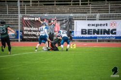 Allein im dritten Viertel kassierte man vier weitere Touchdowns. Am Ende waren es deren elf. „Wir waren die ganze Zeit über voll konzentriert und haben wenig Fehler gemacht, so dass wir dann dementsprechend auch Punkte generieren konnten. Das Ergebnis ist vielleicht am Ende ein wenig zu hoch ausgefallen, aber dann passieren halt auch so unglückliche Aktionen wie das ein Fumble recovert (Das Erobern des Balls nach einem Fumble nennt man Fumble Recovery) wird und uns zu schnellen Punkten verhilft“, berichtet ein stolzer Knights-Headcoach der nun zwei Wochen Zeit hat sein Team auf die nächste Aufgabe bei den Bremerhaven Seahawks vorzubereiten.