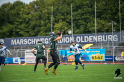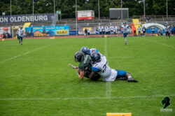 Nur zwei Wochen nach ihrem Rekordsieg gegen die Bremerhaven Seahawks legten die VfL Oldenburg Knights an diesem Samstag noch einen drauf und zerlegten den viermaligen German- und dreimaligen Eurobowl-Sieger Hamburg Blue Devils mit 75:7 in alle Einzelteile. Nun dürfte den Knights der Gruppensieg kaum noch zu nehmen sein.