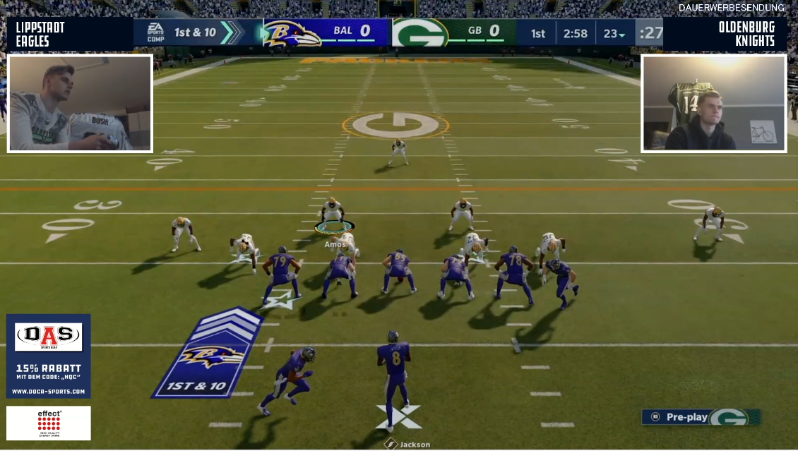 Auch virtuell kommt es manchmal so wie im richtigen Leben. Ein Fieldgoalversuch der am Goalpost endet und eine von Aaron Rodgers in der Overtime geworfene Interception, die in der Folge zum Pick 6 führt beenden den Traum vom Titel. Freilich alles nur virtuell in der sogenannten Homequarter Challenge. In der Season zwei war das Feld der Starter deutlich größer und das eSport Turnier zog sich für den Outside Linebacker mit der Nr. 14 über zwei Tage. Am Samstag hatte sich der von der Madden Community als „eiskalt“ gefeierte Spieler der VfL Oldenburg Knights für das Halbfinale bereits qualifiziert. Im Viertelfinale lief es noch deutlich besser als im Vorjahr, denn Jeremi Bockler hatte den Vorjahressieger der Challenge hinter sich gelassen.
