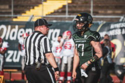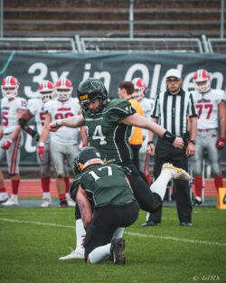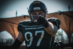 Vier Wochen noch bis zum Saisonstart gegen die Lübeck Cougars und die VfL Oldenburg Knights scheinen bereits in guter Frühform zu sein. Am Samstag empfing man im heimischen Marschweg Stadion den niederländischen Meister Amsterdam Crusaders und konnte diesen mit 23:12 (7:6) besiegen. Im Gegensatz zu den Knights befinden sich die Crusaders bereits mitten in ihrer Saison und sind damit deutlich eingespielter als die Oldenburger, was ihnen am Samstag aber wenig nutzte. Die 992 Zuschauer bekamen in der ersten Halbzeit ein sehr intensiv geführtes Spiel zu sehen in dem die Gastgeber einmal mehr für den ersten Touchdown des Spiels sorgten und so mit 7:0 in Führung gingen. Noch vor der Pause gelang auch den Gästen ihr erster Touchdown. Allerdings verpasste man die Chance per Extrapunkt auszugleichen, so dass es mit einer 7:6 Führung für die Hausherren in die Kabinen ging. Nach der Pause konnten die Knights dann Fehler in der gegnerischen Offense konsequent für sich ausnutzen und durch zwei weitere Touchdowns, sowie einem Field Goal die Führung auf 23:6 ausbauen. Zwar gelang den Gästen wenig später noch ihr zweiter Touchdown, aber zu mehr sollte es nicht mehr reichen. „Es war das erwartet körperbetonte Spiel auf Augenhöhe, mit einem positiven Endergebnis für uns. Allerdings haben sich auch noch einige Baustellen aufgetan an denen wir in den nächsten vier Wochen noch intensiv dran arbeiten müssen“, zeigte sich Cheftrainer Marcus Meckes speziell mit dem Passspiel seines Teams, bisher eine der Stärken der Knights, wenig zufrieden. „Es hat sich stark bemerkbar gemacht das mit Christoph Oetken (Karriereende), Johann Kruthaup und Rudolf Henne (beide verletzt) drei erfahrene Passempfänger gefehlt haben. Wir haben viel mit jungen Spielern gespielt und die sind halt noch nicht soweit“. Für die Punkte sorgten die Running Backs Neuzugang Terry Hunter Jr. (2 Touchdowns) Nils Bünger (1 TD) sowie Kicker Darrian Naujoks mit zwei Extrapunkten sowie einem Field Goal.
