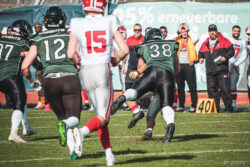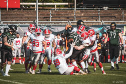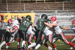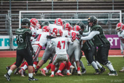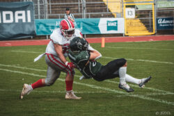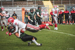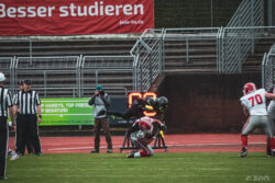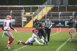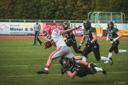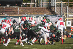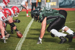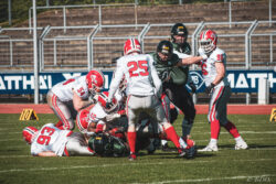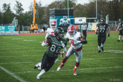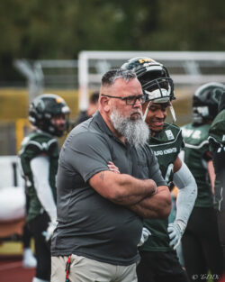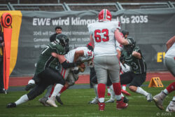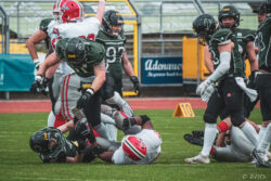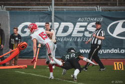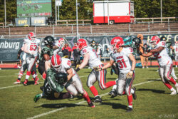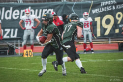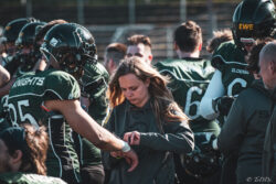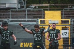 Auch außerhalb des Spielfeldes zeigte man sich auf Seiten der Knights mit der Generalprobe mehr als zufrieden. „Organisatorisch lief schon vieles so wie wir es uns vorgestellt haben und auch mit unserer neuen Videowand waren wir zufrieden“, berichtet Holger Völling, der speziell was die Videowand betrifft noch ein wenig nachjustieren möchte. „Die Frage des Standortes ist hier sehr wichtig da die aufgrund der angezeigten Spielzeit für beide Teams und die Schiedsrichter gut einsehbar sein muss. Wenn sie dann noch für die Zuschauer gut sichtbar ist steht sie natürlich optimal“, zeigte sich Völling mit dem Standort auf der Gegengerade mehr als zufrieden und war erleichtert das auch der Schiedsrichter-Obmann dies so sah. Zufrieden zeigte er sich auch mit der Zuschauerzahl von 992 Zuschauern, darunter 200 Ukrainer, ob der gleichzeitig stattfindenden Bundesligaspiele des VfL und der Baskets. „Wir haben auf jeden Fall gesehen wo noch Verbesserungspotential besteht. Die kommenden Wochen nutzen wir nun für den Feinschliff bei der Mannschaft und in der Organisation“.